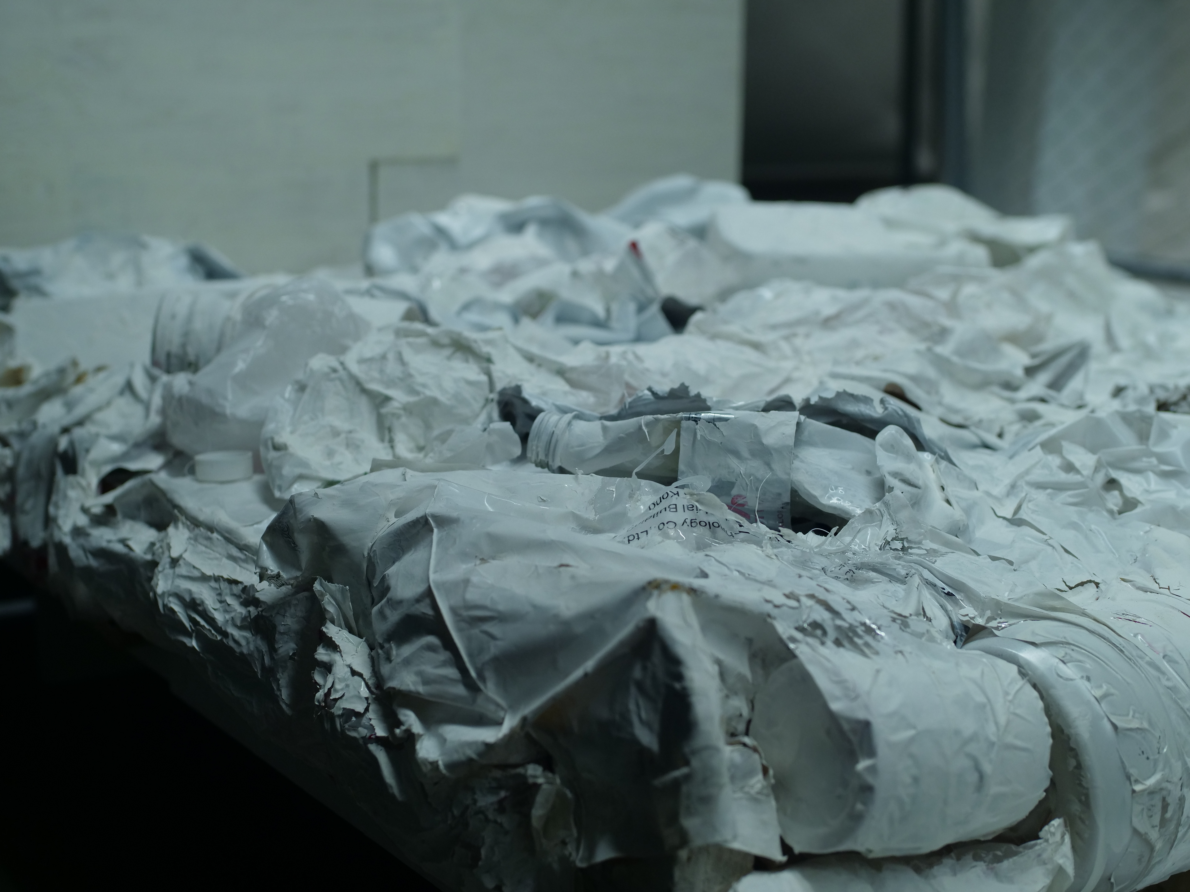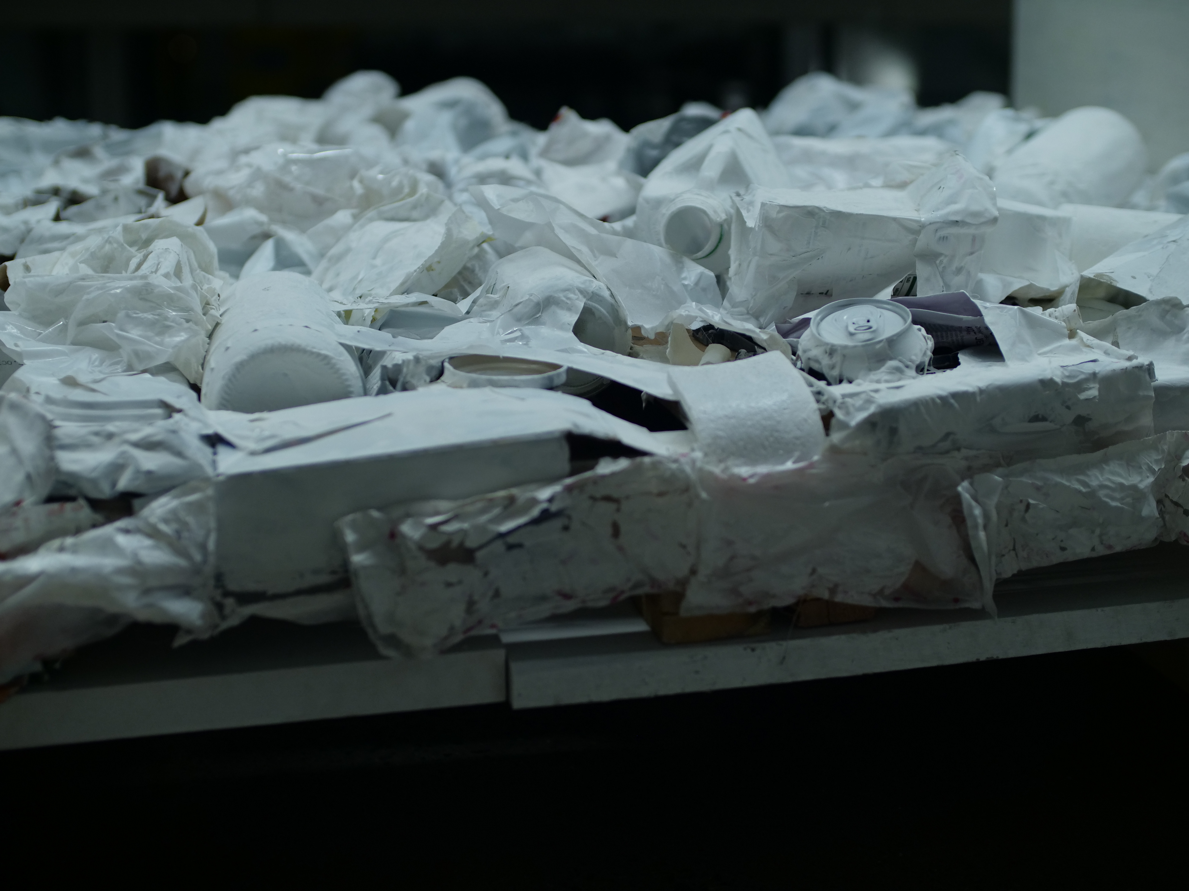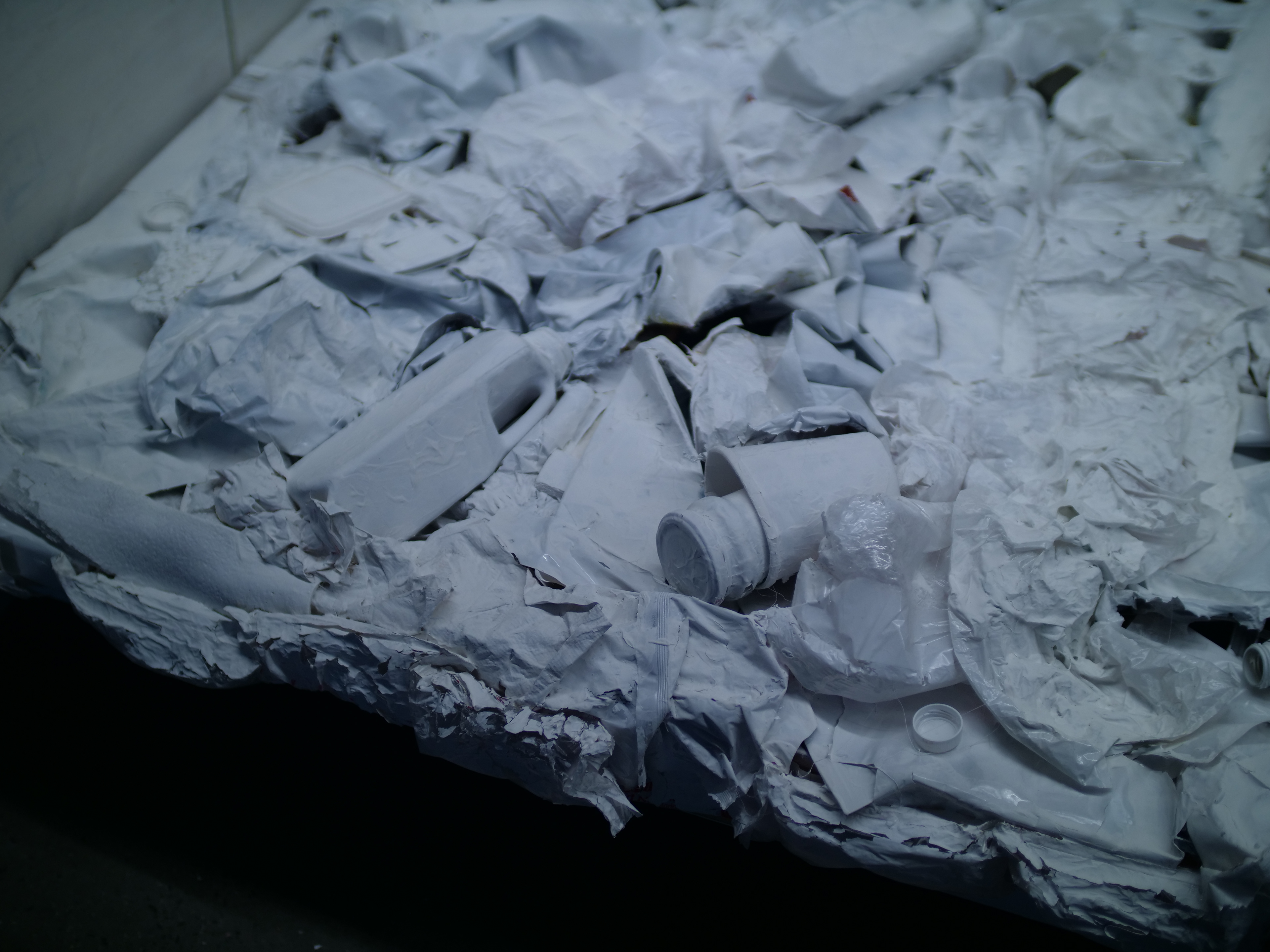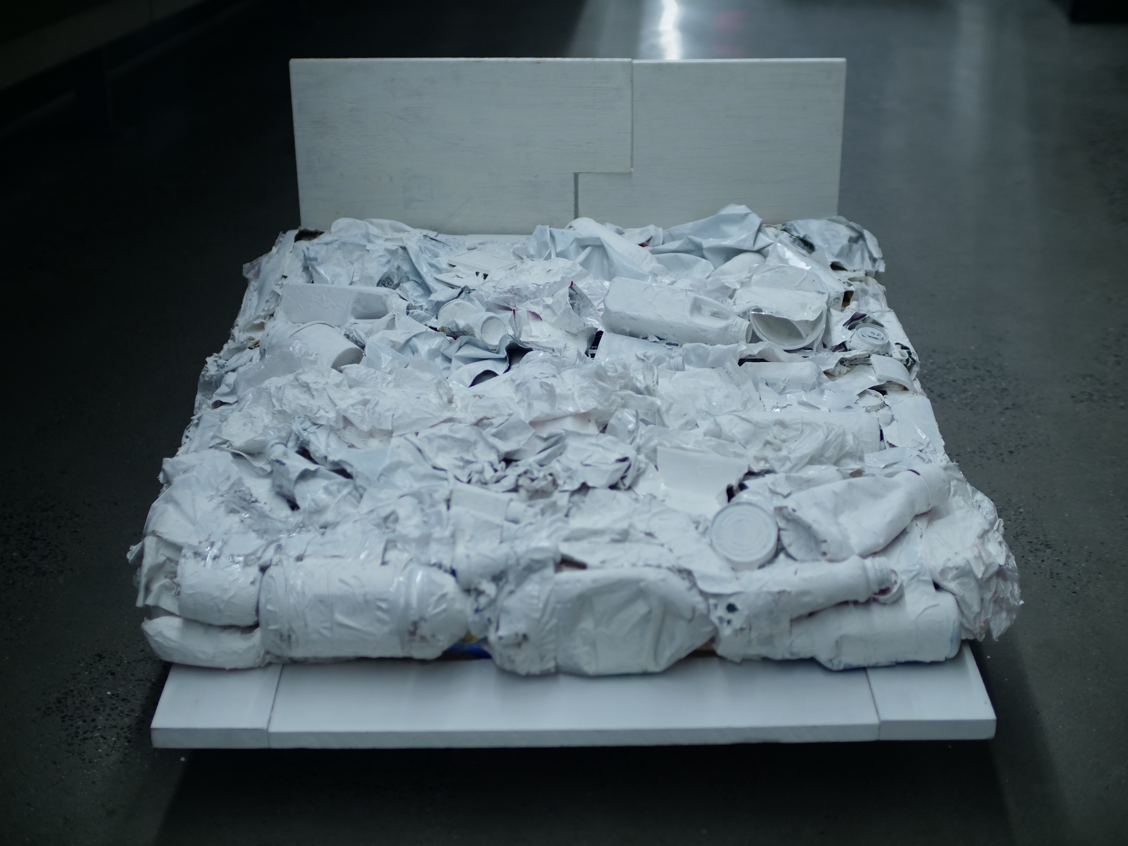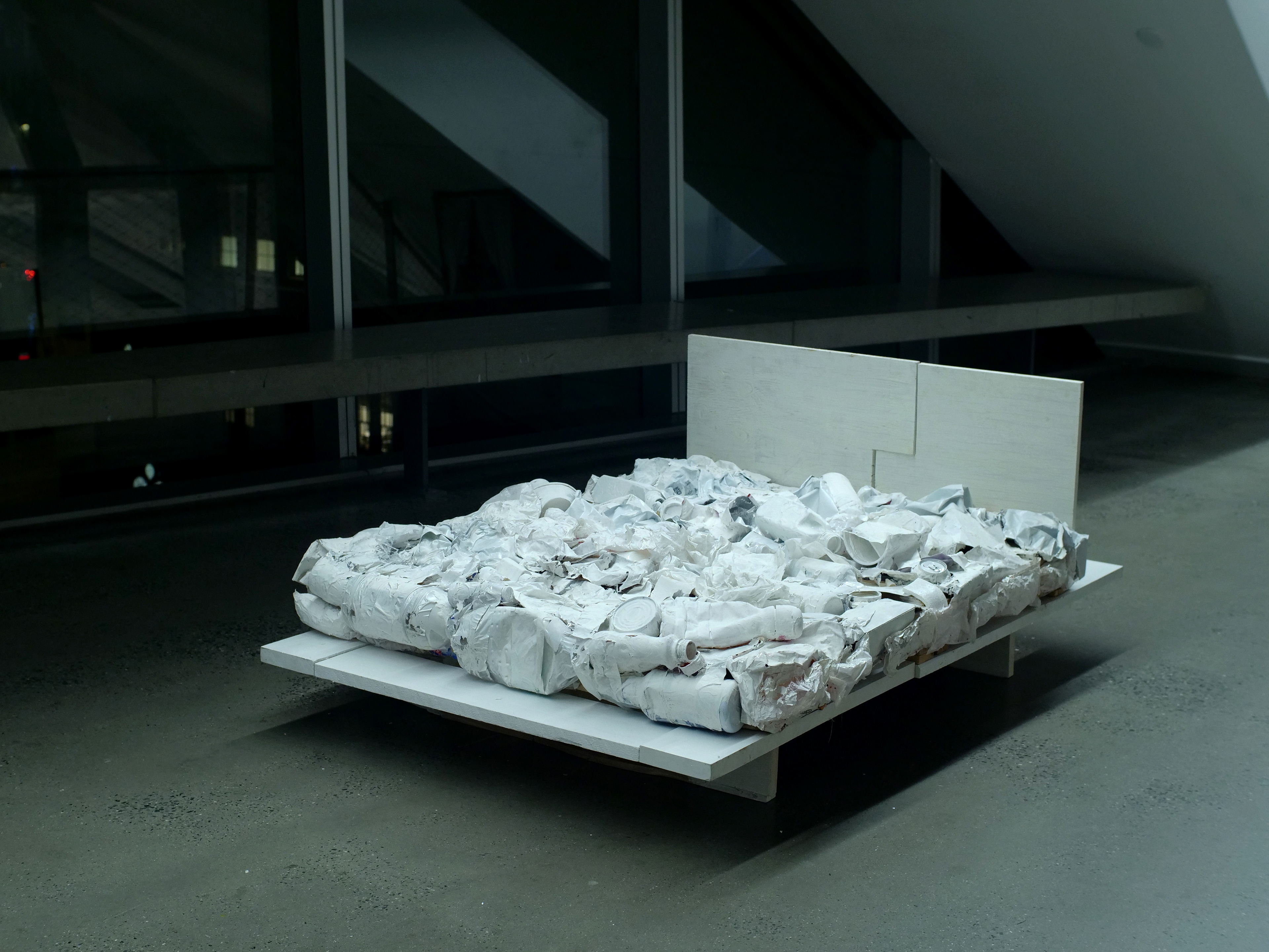 Wood, tape, white acrylic paint, trash